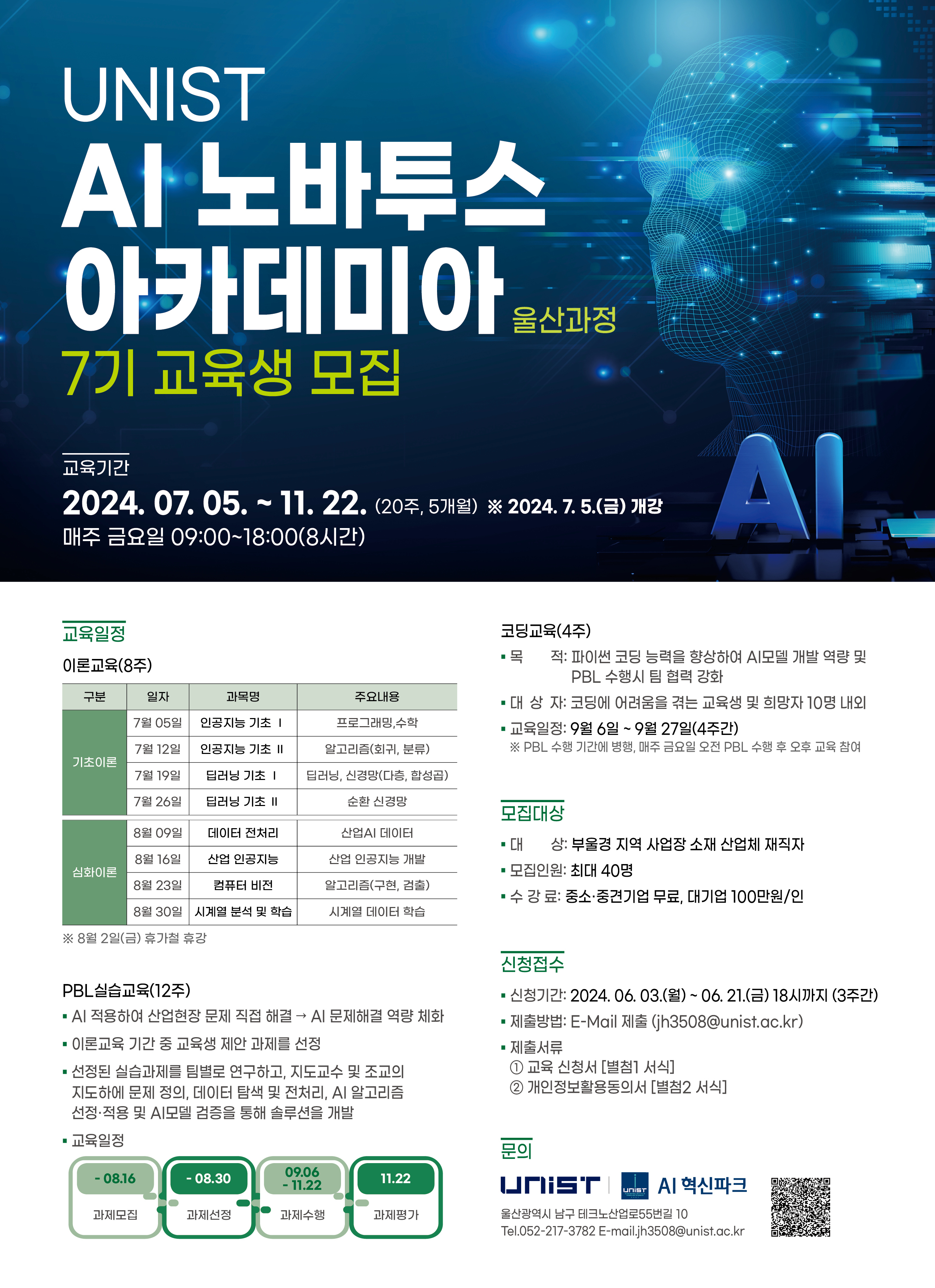 [울산과학기술원] AI 노바투스 아카데미아 7기 교육생 모집