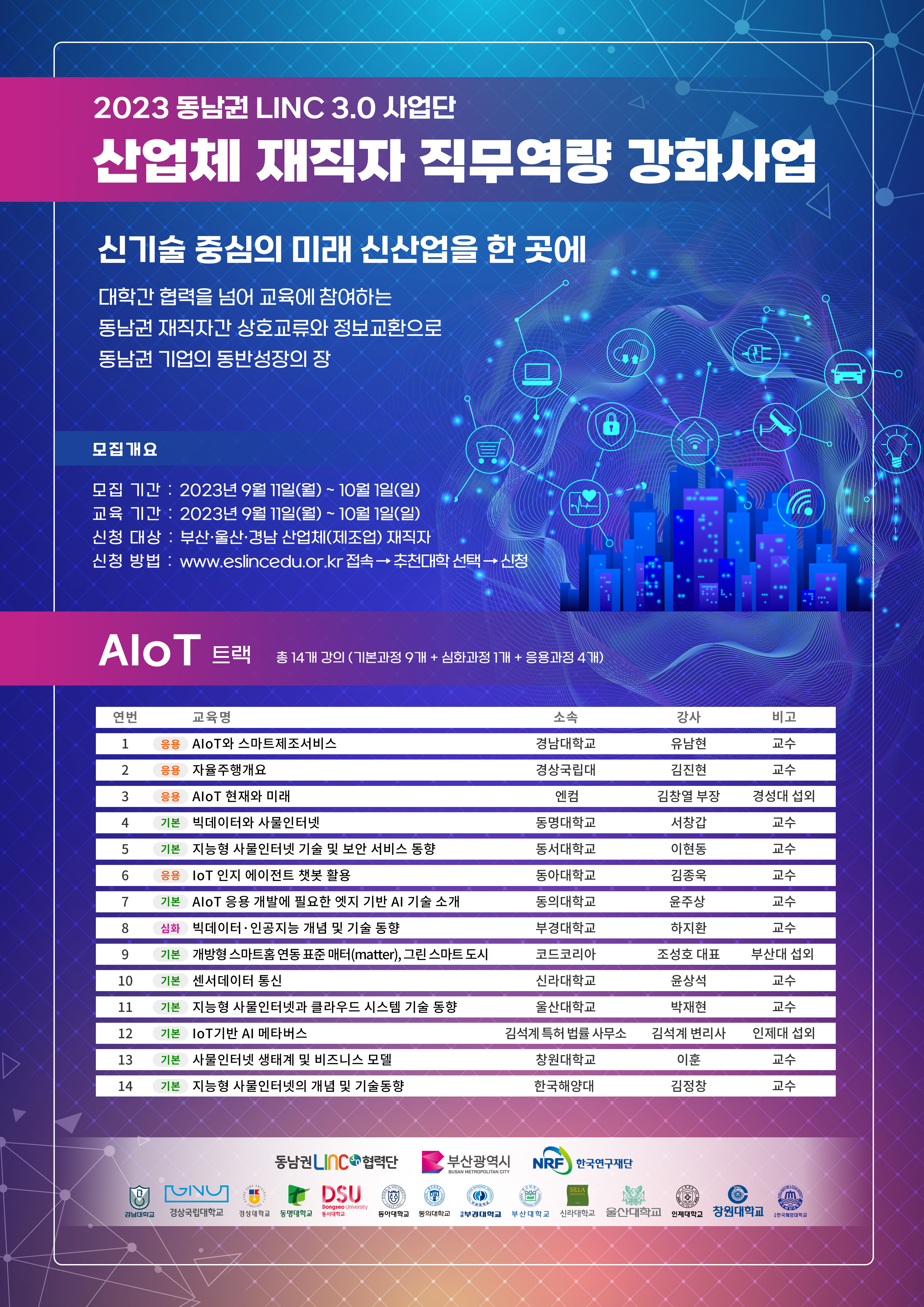 [LINC 3.0 기업지원센터] 동남권 산업체 재직자 직무역량 강화사업 프로그램 안내 (1회차_AIoT트랙)