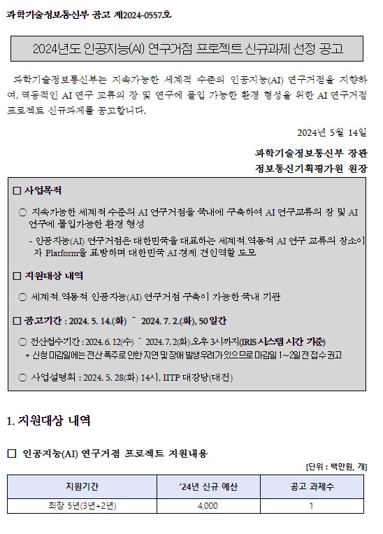 2. 사업설명회 : 2024. 5. 28.(화) 14시, IITP 대강당(대전)