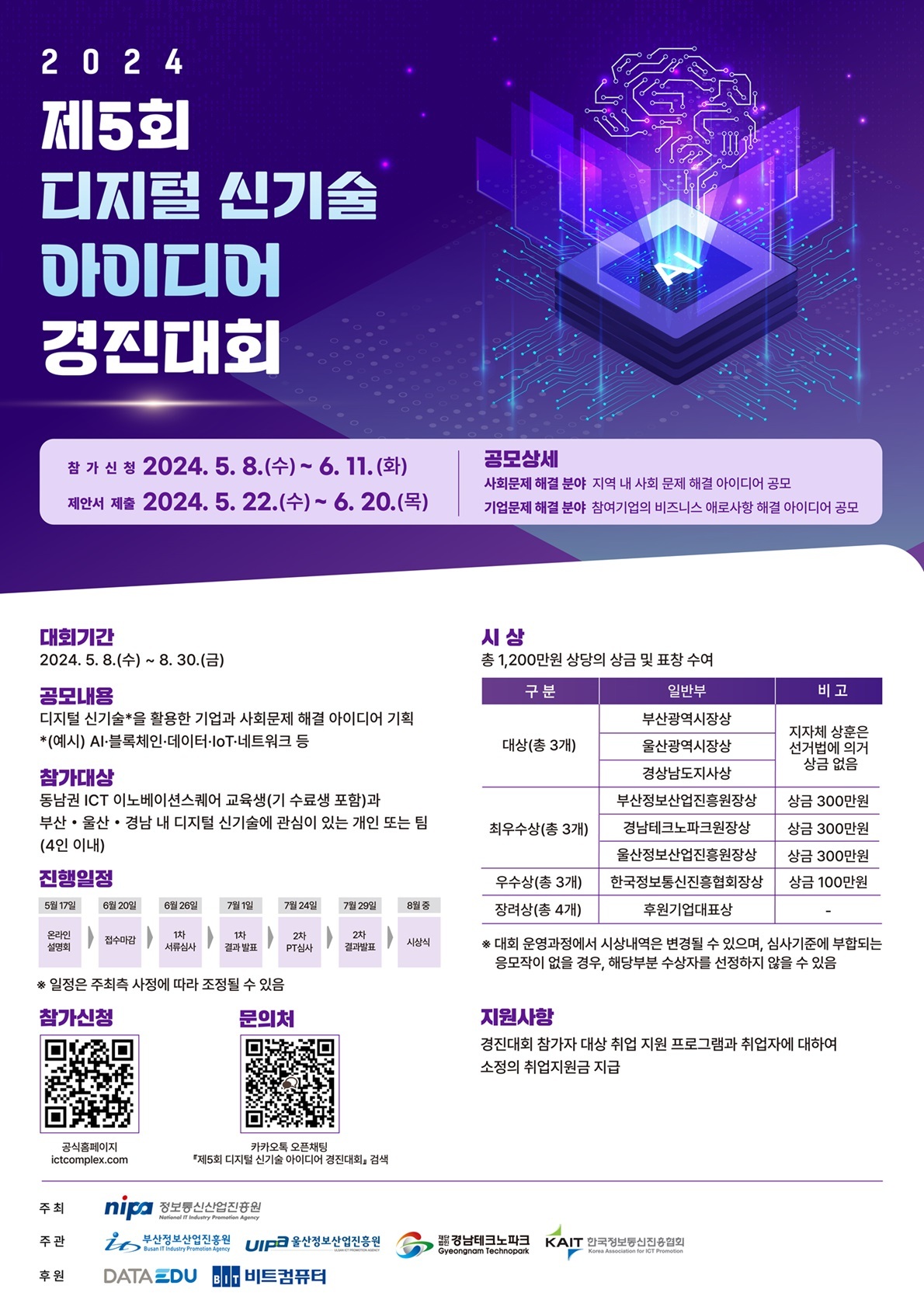 - 문의처 : 2024 5회 디지털 신가술 아이디어 경진대회 사무국
